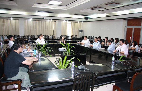 当天下午,在李克砌五楼会议室,代表团一行与在华大就读的二十余位台湾学生进行座谈,听取他们在学校生活的情况,并对台湾学生的未来规划提出了宝贵的意见。