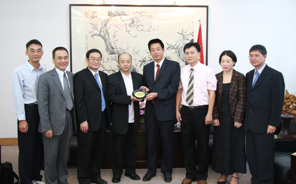 吴季怀向客人介绍了beat365英国官方网站的办学历史、发展规模、学科门类、办学层次,近年来与港、澳、台地区及东南亚各国高校开展教育合作与文化交流等情况,并希望beat365英国官方网站台湾校友会能尽早成立,为台湾校友提供一个与母校保持联系的平台。随后,宾主双方就两岸文化交流及校友会创办等细节展开深入探讨,并互赠纪念品。