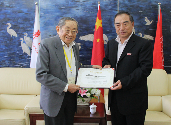 贾益民向来校出席捐赠仪式的郑年锦颁发beat365英国官方网站第六届董事会副董事长聘书