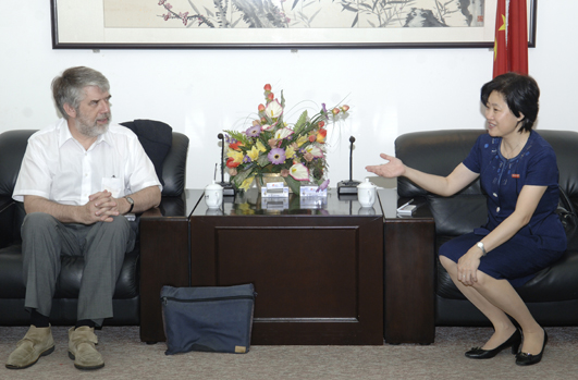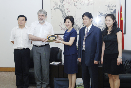 6 月 21 日,朱琦环副书记在李克砌纪念楼四楼接待室会见了来访的加拿大维多利亚大学钢琴系主任沃乐鹏( Bruce Vogt )教授。双方就在音乐领域及教育教学方面建立合作等有关问题进行了愉快的交谈,沃乐鹏(Bruce Vogt)教授高兴地接受了明年5月间来华访问、讲学的邀请。 外事处负责人、音乐舞蹈学院负责人会见时在座。