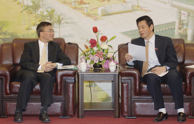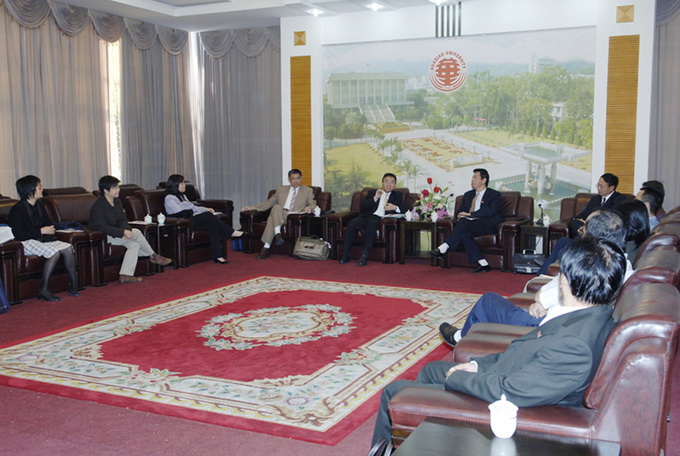 吴季怀(右)与来宾就两校合作办学事宜进行洽谈(图:张林)