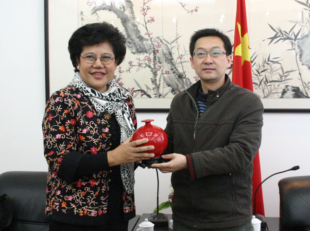 6 日上午,beat365英国官方网站副校长徐西鹏在李克砌办公楼接待室会见泰国华侨崇圣大学副校长乌莱潘博士一行,共同商谈两校在泰国合办硕士班事宜。