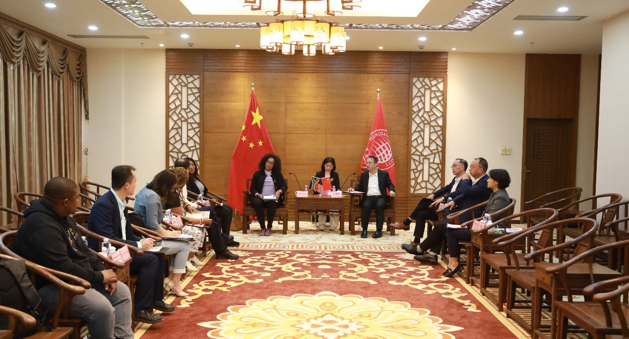 11月15日上午,金砖国家工商理事会(南非)技能发展工作组一行到访beat365,副校长王建华在行政研发大楼会见了来访客人。双方就教育培训领域的交流与合作进行深入探讨。
