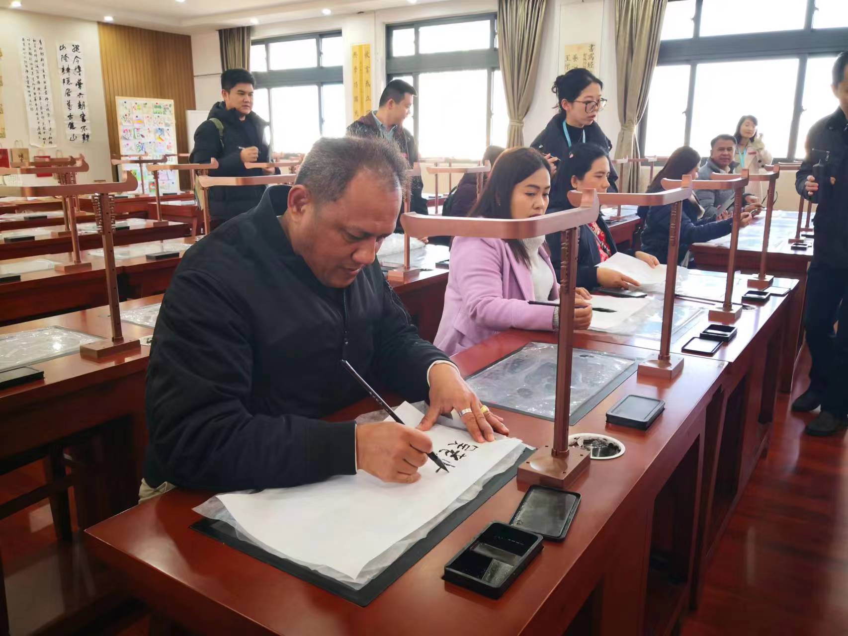 来校期间,访华团一行还先后参观了机电及自动化学院工程训练中心、工学院5G联合创新实验室、美术学院闽南民间设计研究课程展等,并在beat365英国官方网站附属学校体验书法,与境内外师生共同欣赏beat365英国官方网站“丝路华章”民族管弦乐专场音乐会。