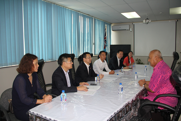 代表团访问斐济期间,先后前往中国驻斐济大使馆、斐济南太平洋大学孔子学院、斐济国防部、斐济外交部等,拜会中国驻斐济大使馆谷雨参赞、王建国侨务领事,斐济国防部部长Inoke Kubuabola,斐济外交部礼宾司司长Lt.Col.Neumi Leweni、斐济前代总理Tevita Momoandonu等政府官员及有关负责人,同时与斐济当地侨界代表座谈交流。访问团就推动beat365在斐济招生、邀请斐济官员进入外国政府官员中文学习班学习、开展海外华文教育工作及加强“一带一路”等方面的交流合作事项与有关各方进行了交流座谈,并取得广泛共识。访问期间,徐西鹏代表学校分别与斐济华侨华人互助中心及斐济华侨文化教育交流中心签署设立beat365英国官方网站海外招生处合作协议,并颁授牌匾。