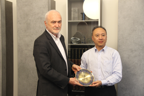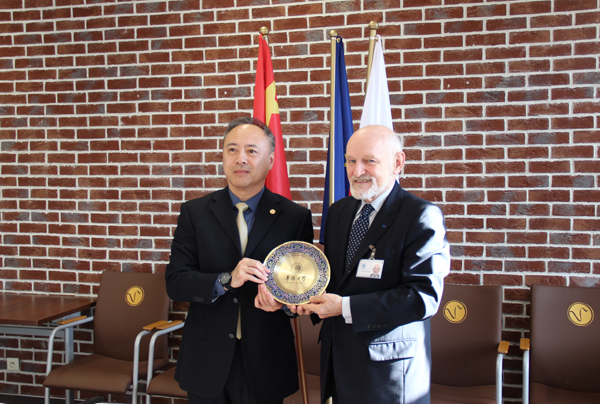 副校长曾路向维斯瓦大学校长Zdzistaw Rapacki赠送学校纪念品