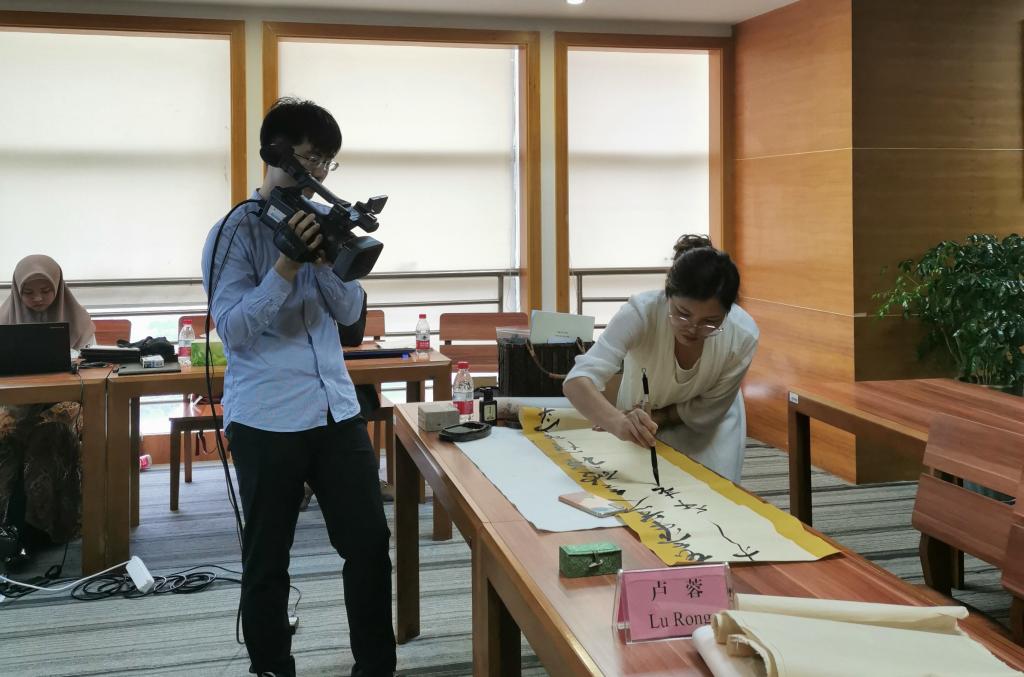 beat365英国官方网站教师进行首场授课,展示中国书法