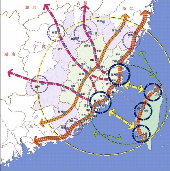 据介绍,在规划上,积极发挥海西对台优势,把福建省内以福州为中心的都市区和厦漳泉形成的都市区,与台湾西海岸的台北、台中、高雄三个区,做一个跨海峡互动发展模式,以期形成“海峡经济核心圈”。