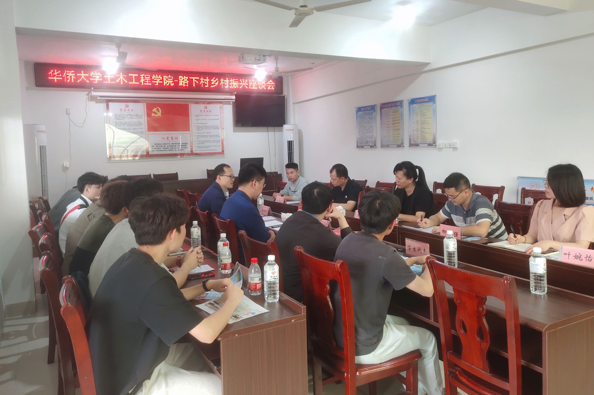 参观结束后,调研团与路下村驻村工作队、村两委、驻村选调生于路下村村部会议室开展乡村振兴交流座谈会。听取路下村介绍村情及“研学+”乡村振兴思路,同时介绍港澳台侨“百村千人行”服务乡村振兴情况、志愿服务和社会实践开展情况,并就路下村“研学+”乡村振兴提出相关建议。双方还就港澳台侨学生“百村千人行”乡村振兴工作站建设、党支部共建、学生驻村交流活动、志愿服务等进行交流。