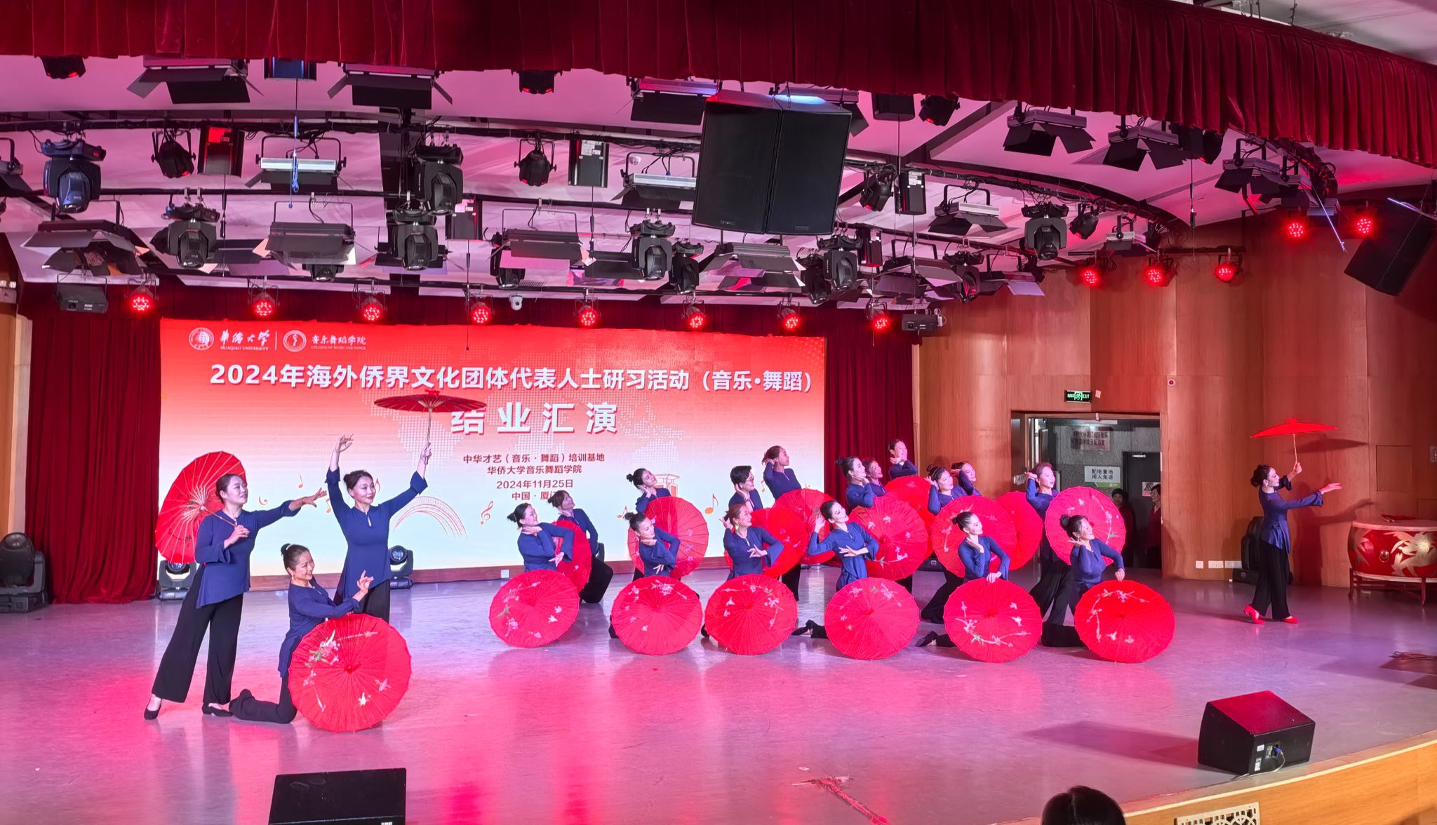 11月25日下午,2024年海外侨界文化团体代表人士研习营(音乐·舞蹈)结业汇报演出在beat365李碧葱音乐舞蹈大楼演播厅上演。来自20个国家和地区的40余位海外侨界文化团体代表通过为期14天的研习,不仅展示了中华乐舞的独特魅力,更架起海外侨界与中华优秀传统文化交流的友谊桥梁。