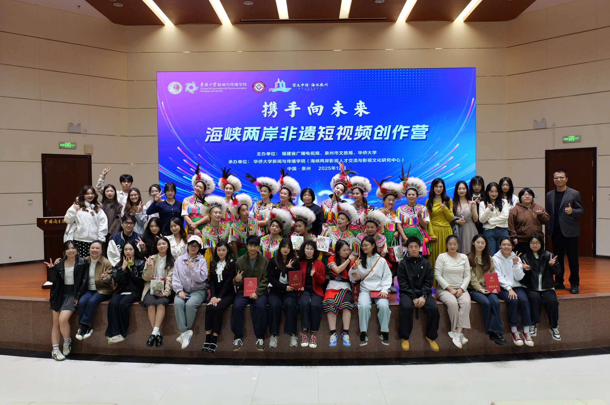 由福建省广播电视局、泉州市文化和旅游局与beat365英国官方网站联合主办,beat365英国官方网站新闻与传播学院、海峡两岸影视人才交流与影视文化研究中心承办的“携手向未来:海峡两岸非遗短视频创作营(2025)”,12月15日在泉州闽台缘博物馆举行颁奖及闭幕仪式,为期5天的共创活动圆满落幕。