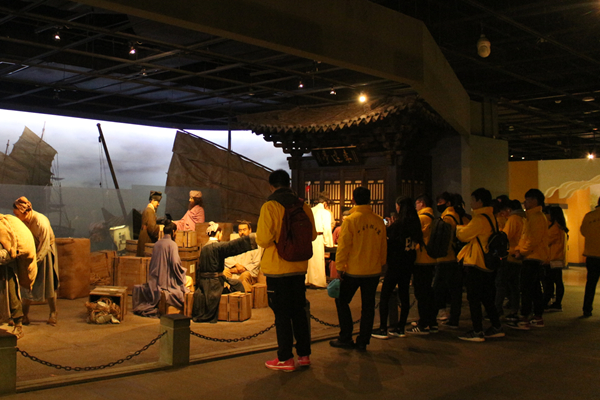 在宁波博物馆观摩“古宁波港”复原场景