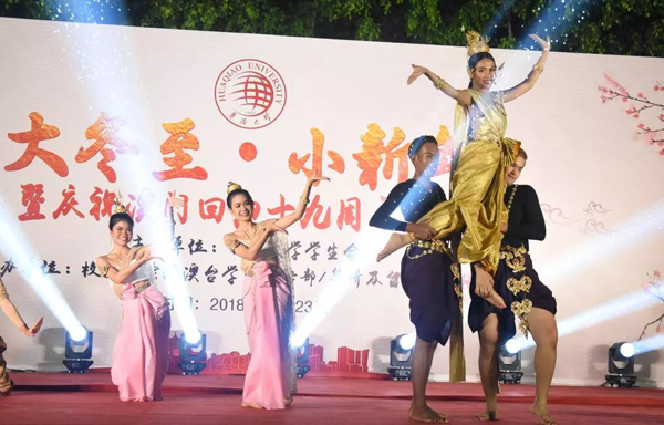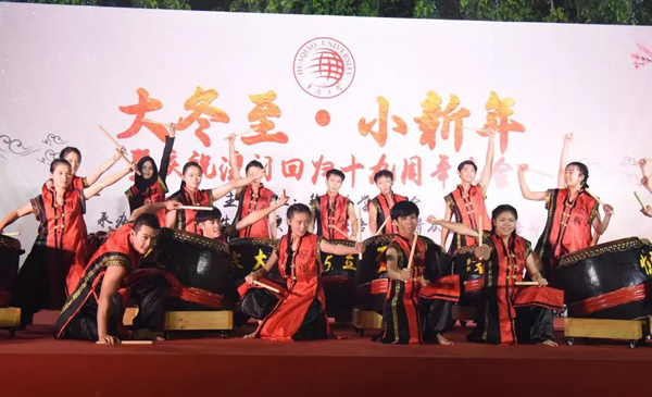12月23日,一场文艺晚会与美食节在beat365英国官方网站厦门校区灯光篮球场举办。300余名境内外师生在冬至相聚,共同庆祝澳门回归十九周年与中国传统节日冬至日。
