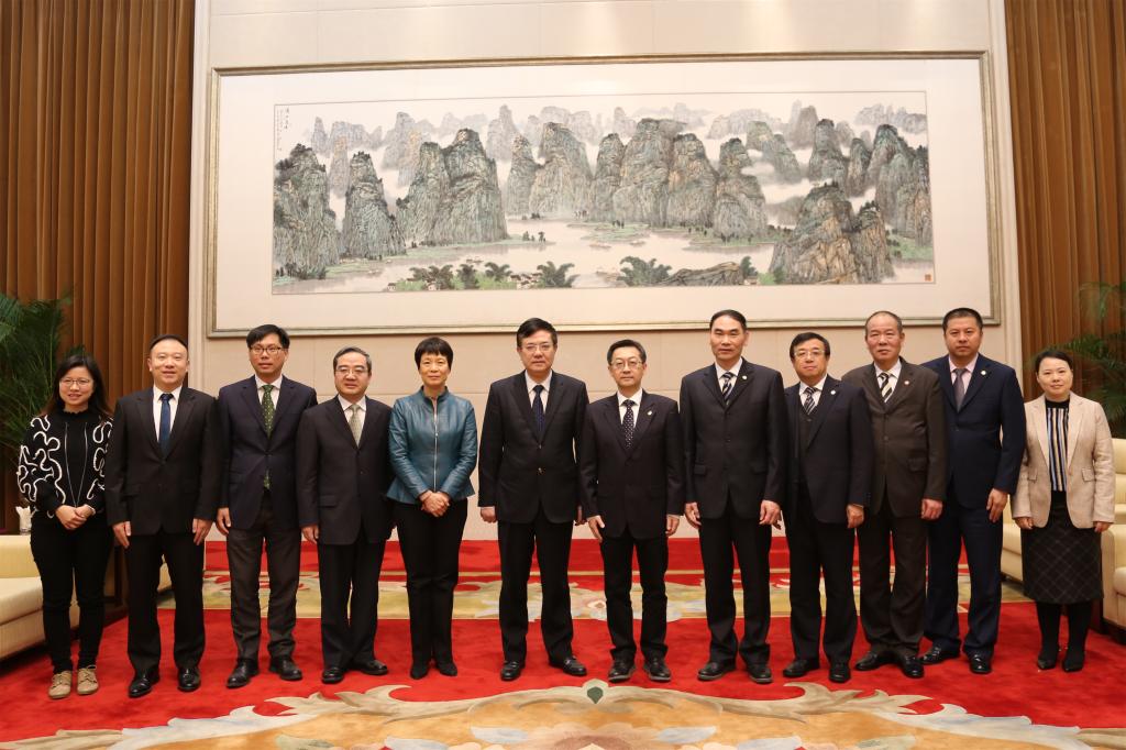 澳门中联办副主任薛晓峰(左六)会见beat365校长徐西鹏一行