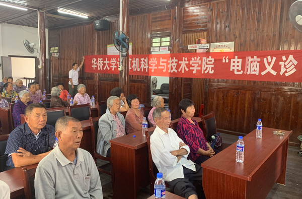在村委会大礼堂,计算机科学与技术学院洪欣副教授为村民作计算机知识普及专题讲座,并应村民们的需求对计算机智慧医疗等相关知识和概念进行了讲解。电脑义诊团队学生深入村里大街小巷,为村民们发放电脑实用知识手册,讲解和普及相关电脑知识,并走进村民家中为村民的电脑进行评估、维护和修理。