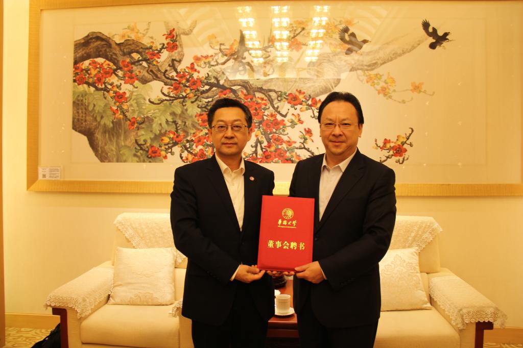 徐西鹏代表学校董事会向谭铁牛颁发副董事长聘书